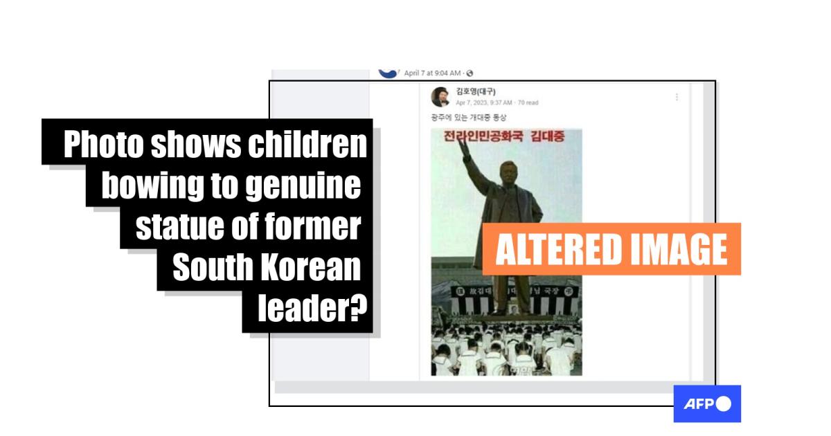 An online search found the head section of the doctored image corresponds to a bust of the former president located in Gwangju’s Kimdaejung Convention Center.