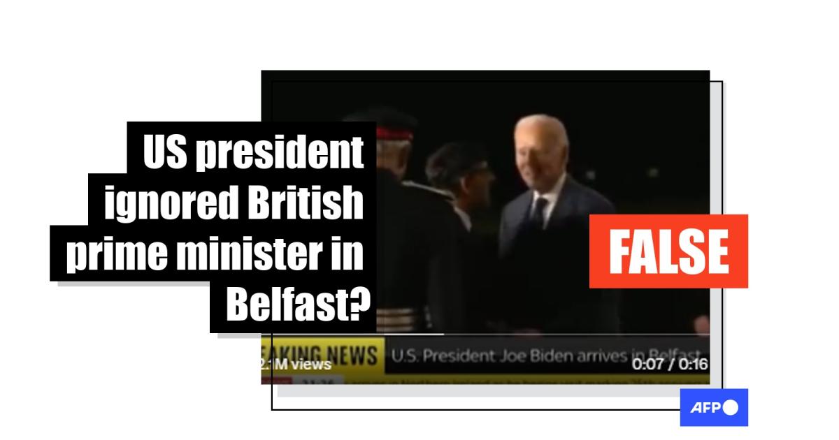 But the allegations that Biden snubbed Sunak as he touched down in Northern Ireland are false, based on a video that was edited to skip over the greeting and handshake between the two men.
