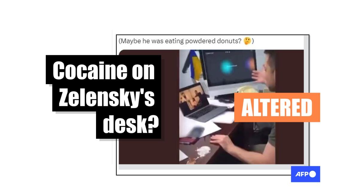 AFP previously debunked a fake picture apparently showing Zelensky holding a t-shirt emblazoned with a swastika (archived here) and a video edited to make it look like he said cocaine was "awesome" (archived here).