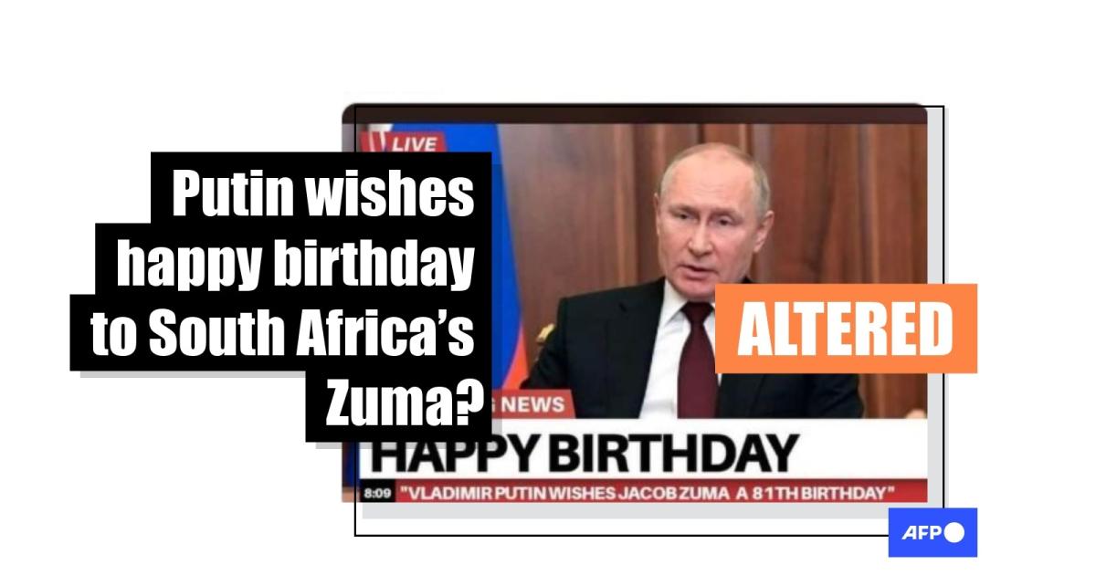 Posts falsely claim Russia’s Putin wished S. African ex-leader Zuma happy birthday on TV