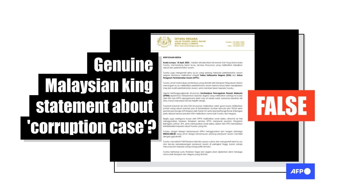 False statement from Malaysian palace shared in posts accusing government officials of graft