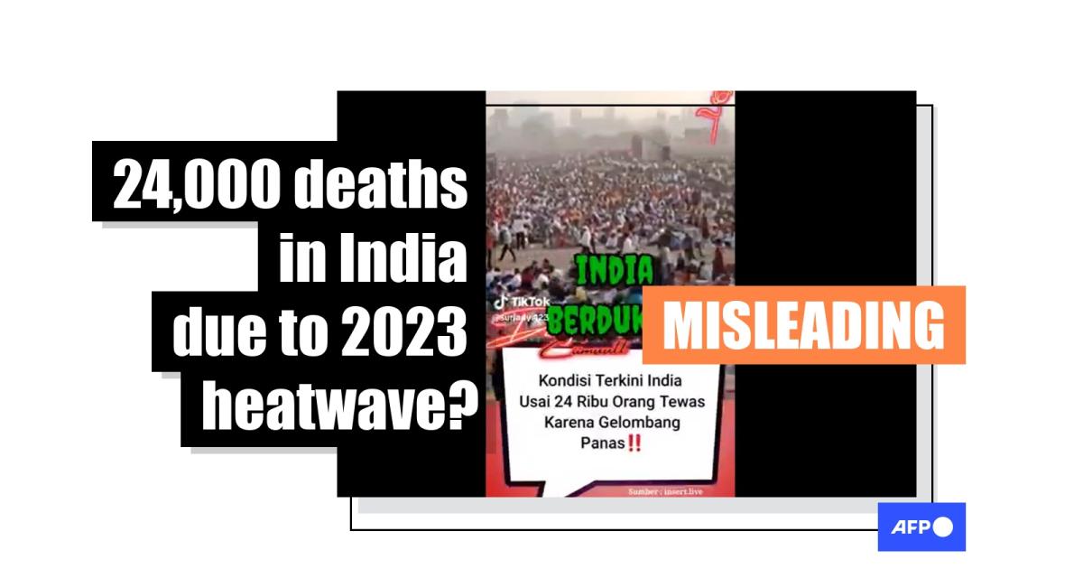 The post also uploads a screenshot from the video, as well as screenshots of April 2023 news headlines from local media CNBC Indonesia and Detikcom about 24,000 heatwave deaths in India (archived links here and here).