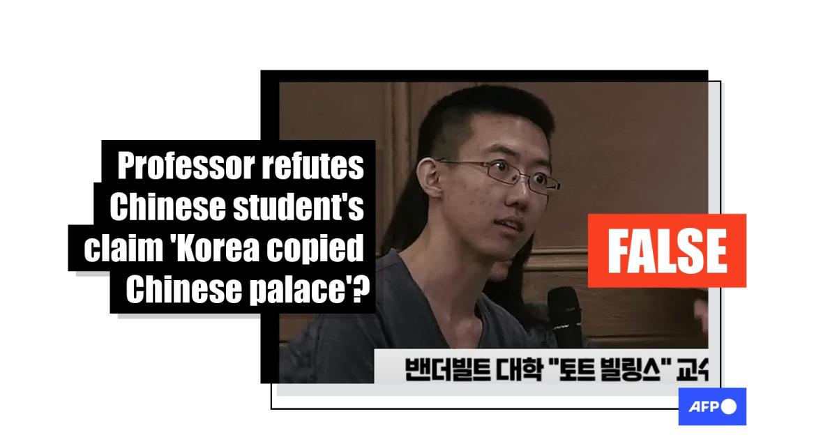 The video contains two voices speaking in English. One says Korea "copied everything from China" and that Gyeongbok Palace was "built by China and is a copy of Beijing's Forbidden City", which he claims was built in the early 15th century.