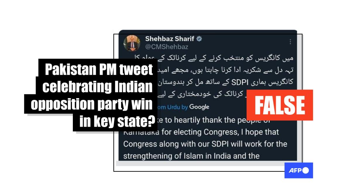 The tweet appears to show a message from Shehbaz Sharif, prime minister of Muslim-majority Pakistan, celebrating Congress's victory.