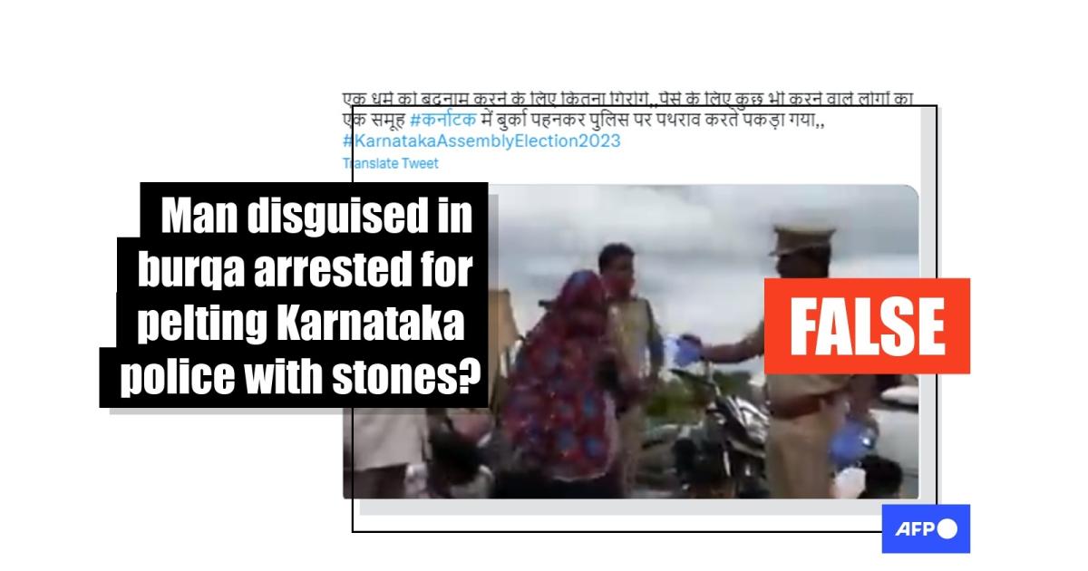 "An RSS worker wore a burqa and pelted stones at police in Karnataka to make people believe that Muslims were spreading violence. Karnataka police exposed them in front of everyone. Thanks, Karnataka police," reads the Hindi-language caption of a video shared on Twitter here on May 15, 2023.