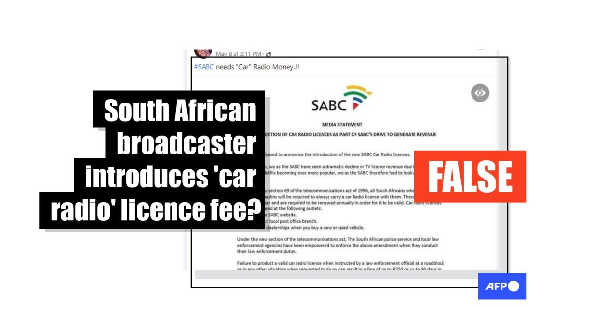 The Independent Communications Authority of South Africa (ICASA), the body charged with approving broadcast licences in the country, told AFP Fact Check that “we have not authorised SABC to issue such a licence to motorists in the country”.