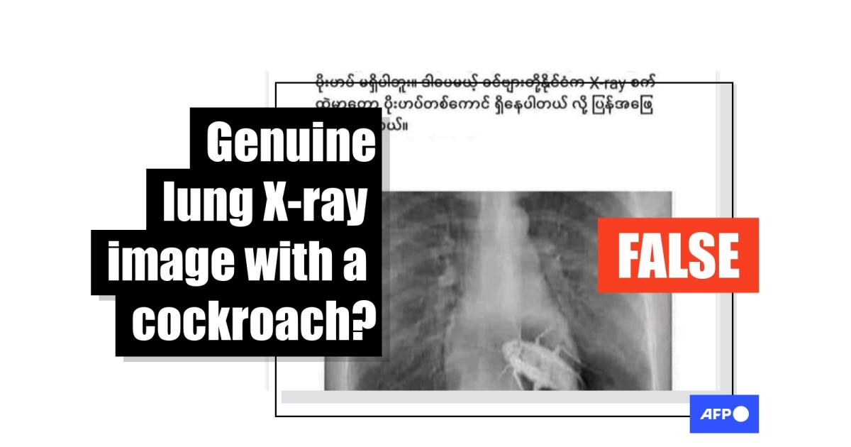 However, the X-ray image has been manipulated to add the cockroach. It was also shared in multiple Burmese-language Facebook posts alongside a similar false claim in 2019; 2020; 2021; and 2022.