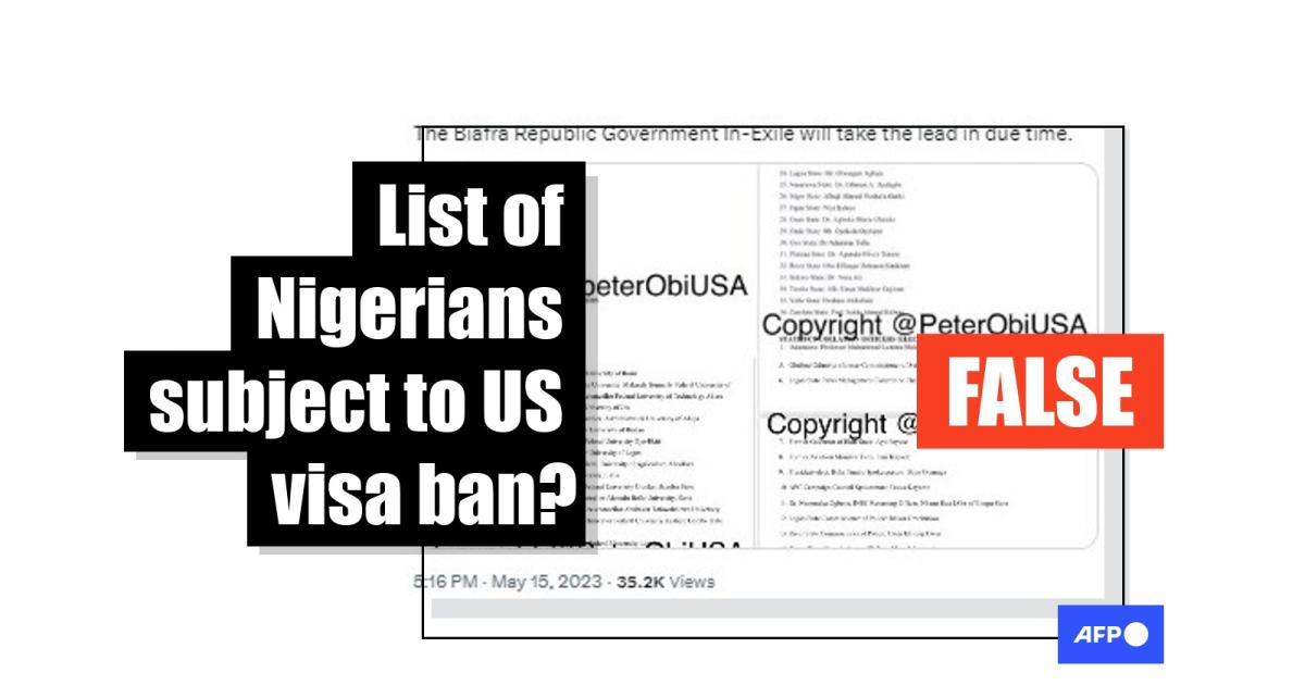 Using a Twitter search, AFP Fact Check found the same list was shared on May 15, 2023, from a social media account that describes itself as "Nigerians in America Diaspora support for Peter Obi Presidential Bid in 2023".