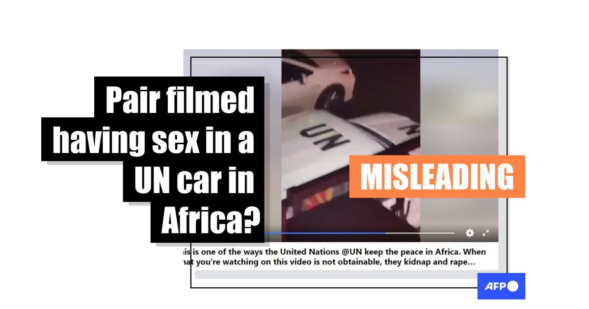 On May 10, 2023, a Nigerian Facebook page published a video of a woman in a red dress straddling a man in the back seat of a white vehicle branded with the letters “UN”. A passenger can be seen in the front seat.