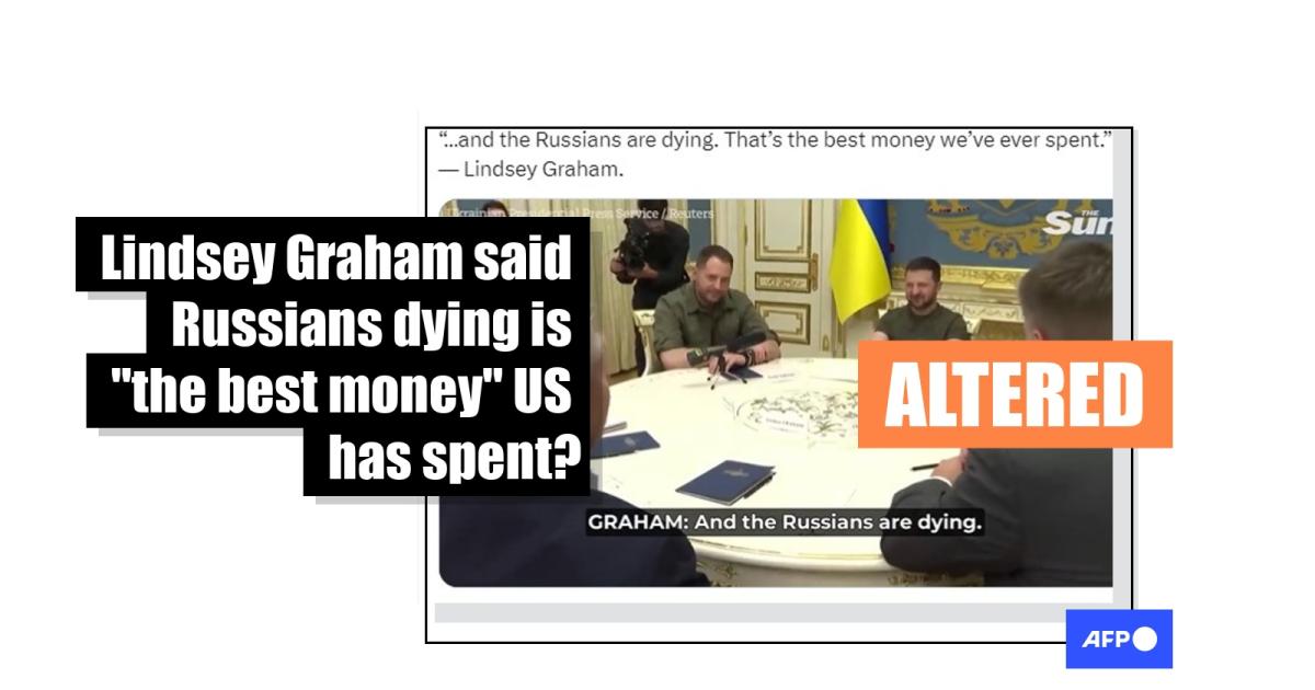 Ian Miles Cheong, a far-right blogger, tweeted a video May 27, 2023 of a meeting between Zelensky and Graham, a Republican from the US state of South Carolina. In it, the senator says: "And the Russians are dying."