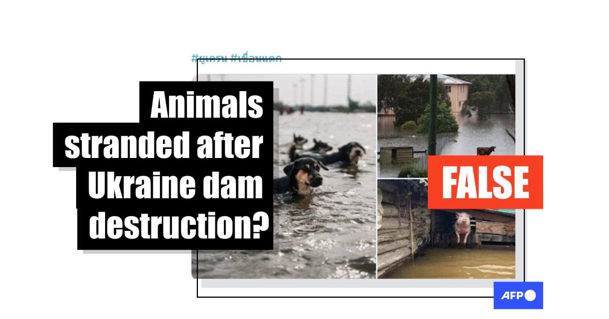 "A large number of pets have been left stranded in floodwaters after the giant dam in Kherson area in Ukraine was attacked," reads a Thai-language tweet posted on June 7.