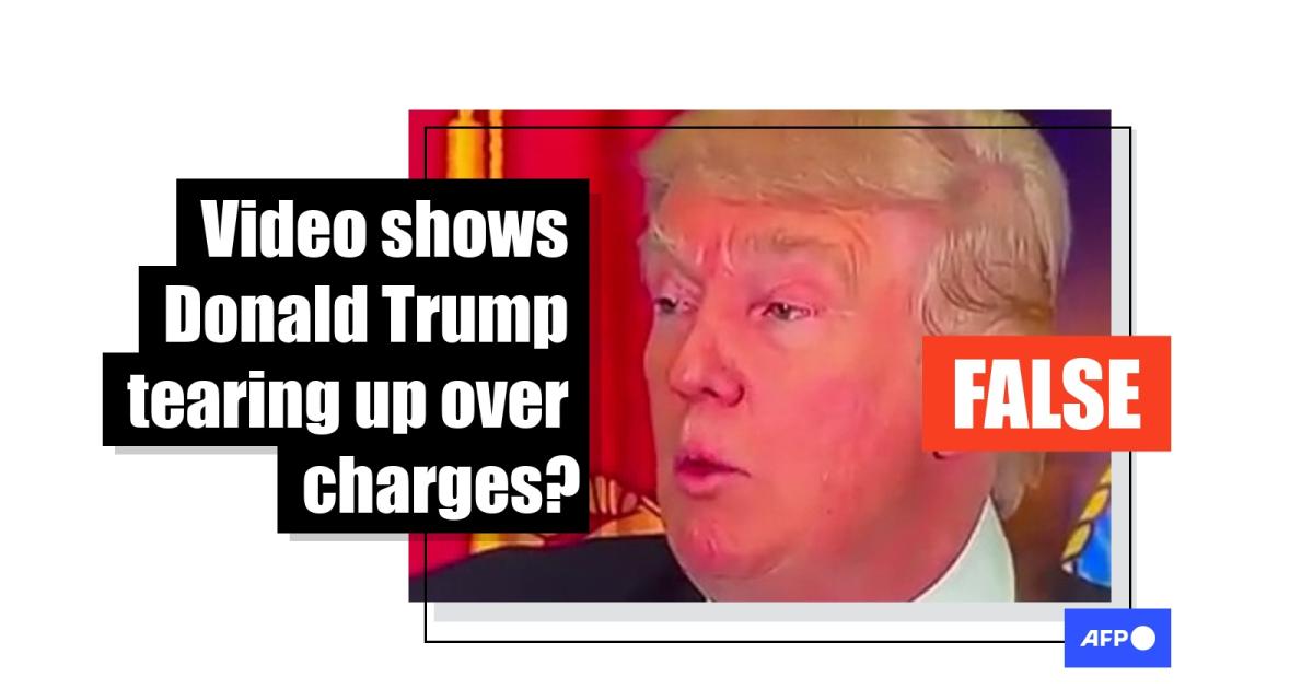 Trump is not crying in the footage. The video shared online appears to have been distorted, as his face and eyes are redder than in the original.
