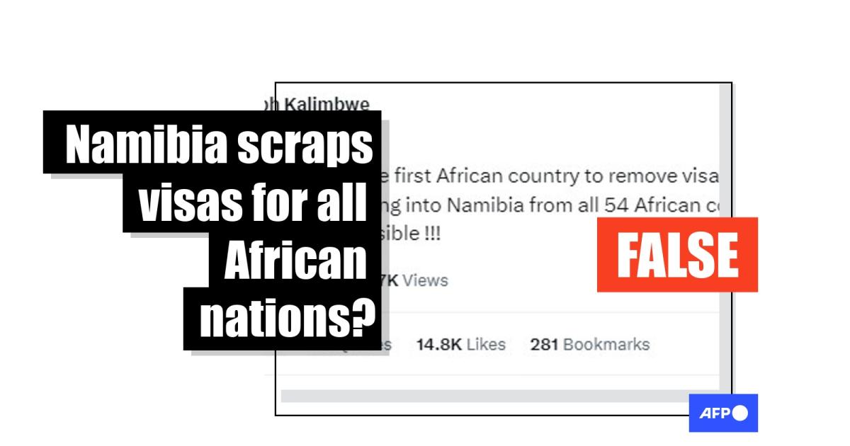 “Namibia has become the first African country to remove visas for all African nationals traveling into Namibia from all 54 African countries. A borderless Africa is possible !!! (sic),” reads a tweet published on June 1, 2023, and shared more than 4,000 times.