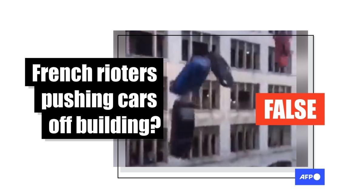 Some of the posts falsely claimed the video showed "immigrants" in France pushing cars off a building (here and here).