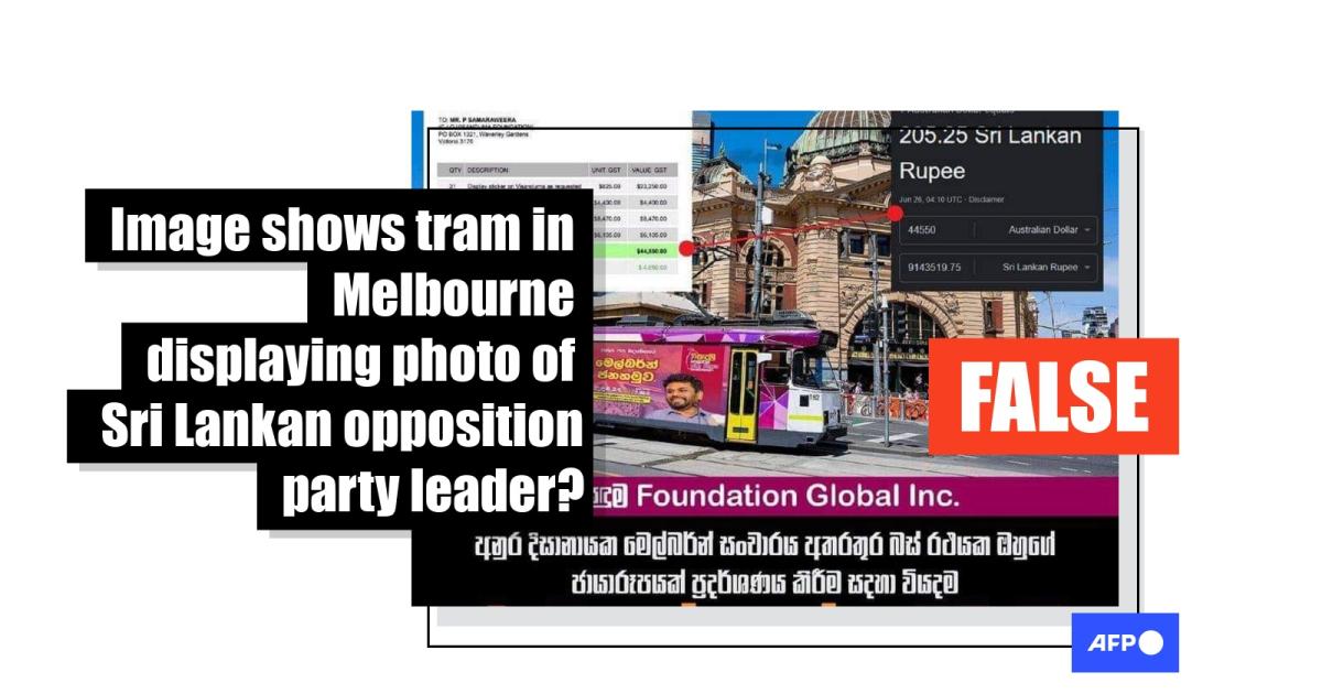 Australia tram photo doctored to add fabricated ad for Sri Lankan opposition leader
