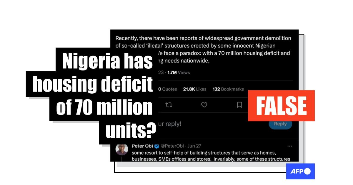 "With a 70 million housing deficit and vast unmet housing needs nationwide, some resort to self-help of building structures that serve as homes, businesses, SMEs offices and stores," Labour Party's Obi said in a tweet on June 27, 2023.