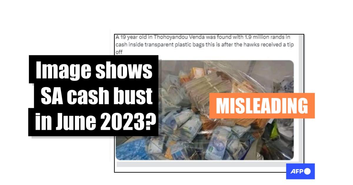 Photo of cash in plastic bags falsely linked to recent arrest in South Africa