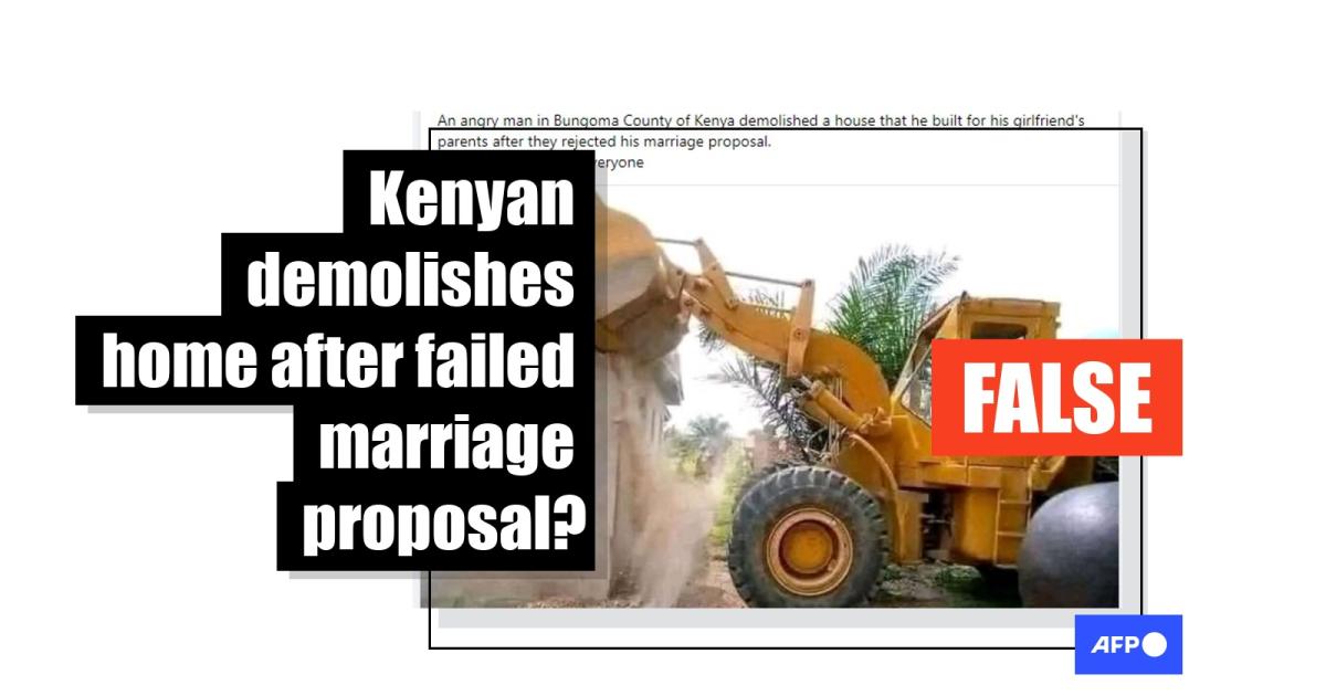 “An angry man in Bungoma County of Kenya demolished a house that he built for his girlfriend's parents after they rejected his marriage proposal,” reads a post published on Facebook on July 2, 2023.