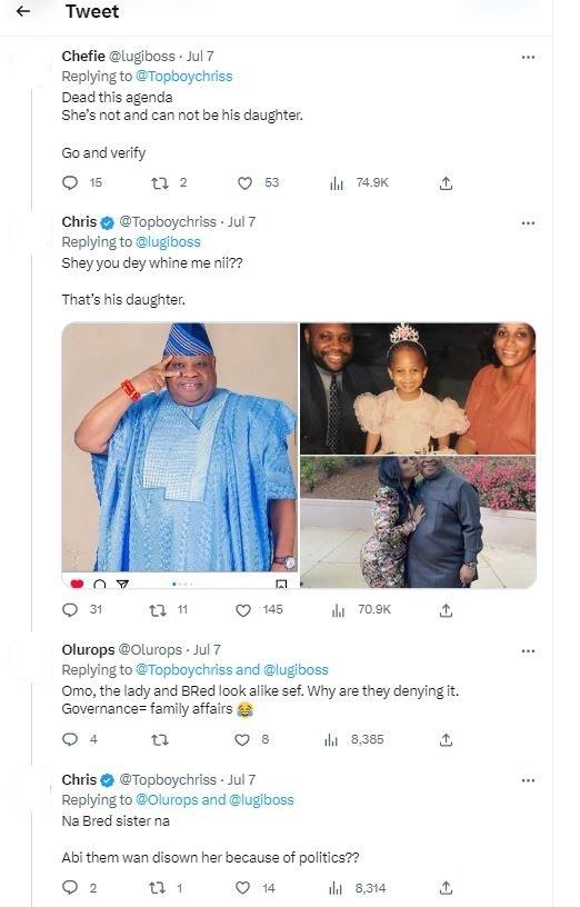 The governor does have a daughter named Adenike Adeleke who has a verified Instagram account (archived here) where she has referred to the governor as her father here and here (archived here and here).