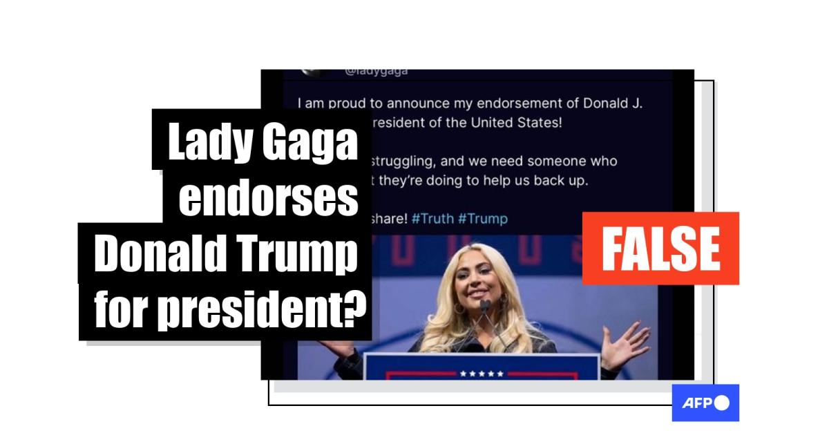 "I am proud to announce my endorsement of Donald J. Trump for president of the United States!" says text in what appears to be a screenshot of a Truth Social post from Lady Gaga, which includes the image. "America is struggling and we need someone who knows what they're doing to help us back it up."