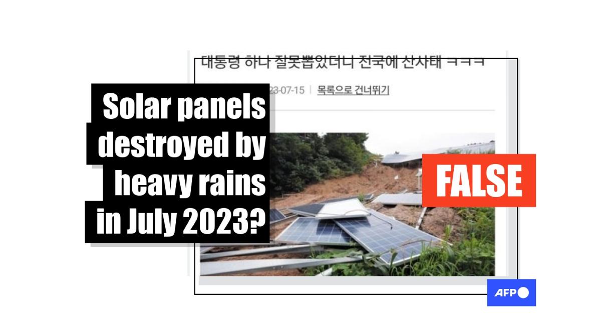 Damaged solar panel photos falsely linked to South Korea monsoon