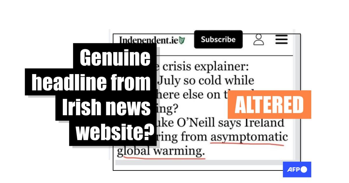 "Why is July so cold while everywhere else on the planet is burning? Prof. Luke O'Neill says Ireland is suffering from asymptomatic global warming," says what appears to be a headline from the Irish Independent in an image shared July 21, 2023 on Facebook.