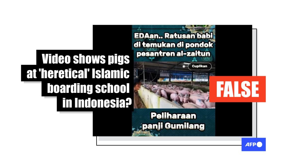 However, the claim is false. Reverse image and keyword searches on Google and Yandex found the photos are unrelated to Al-Zaytun and AFP has not found any credible reports about pigs on the campus.