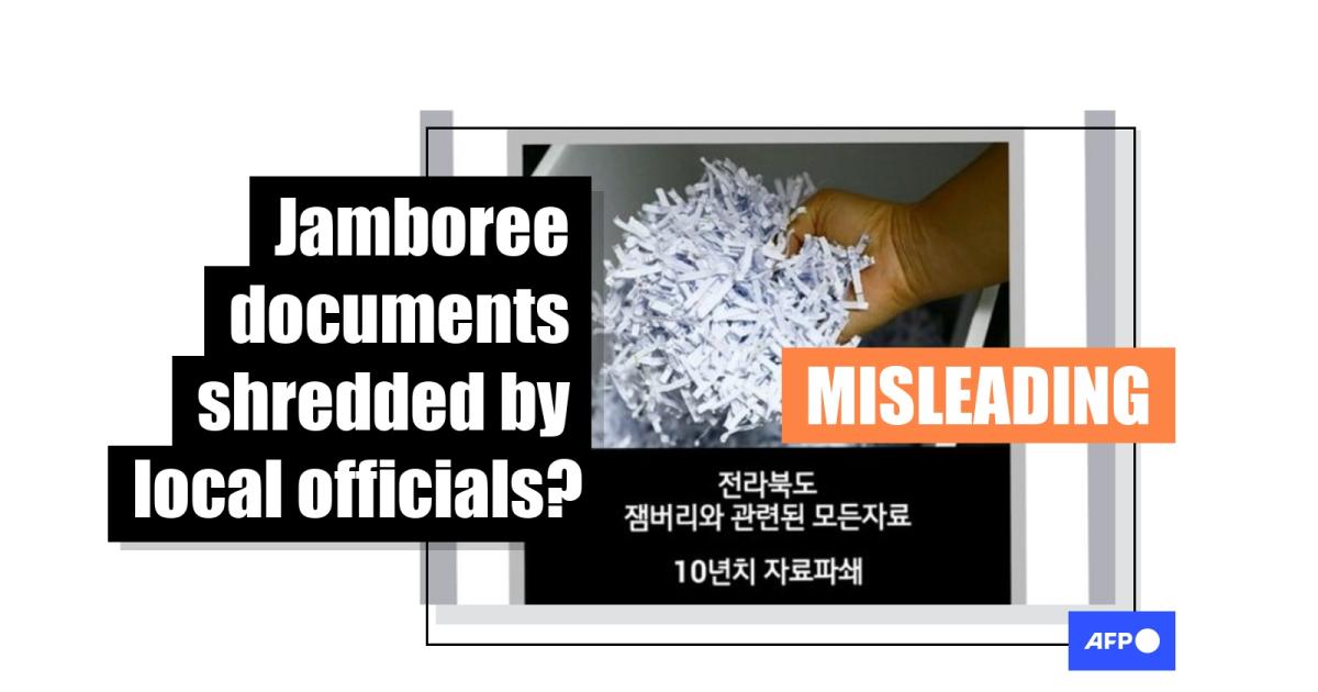 While AFP cannot verify whether officials did shred 10 years' worth of documents related to the jamboree, the image used in the posts is unrelated to the ill-fated jamboree or any investigation.