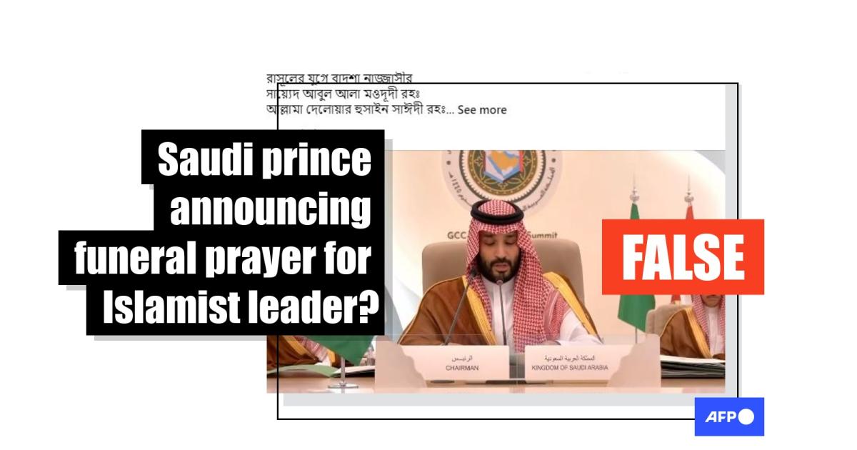Saudi prince addressing summit falsely shared as 'funeral prayer for Islamist leader'