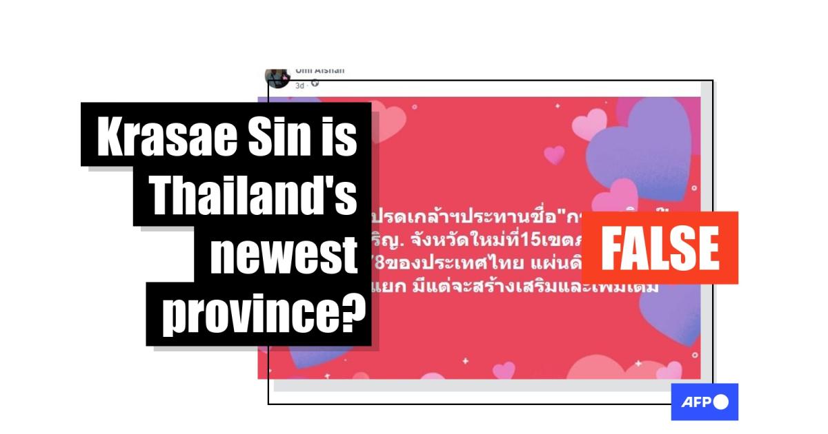 "King Rama 10 has bestowed the name 'Krasae Sin' on the country's newest province," reads the Thai-language claim shared on Facebook on July 8, 2023.