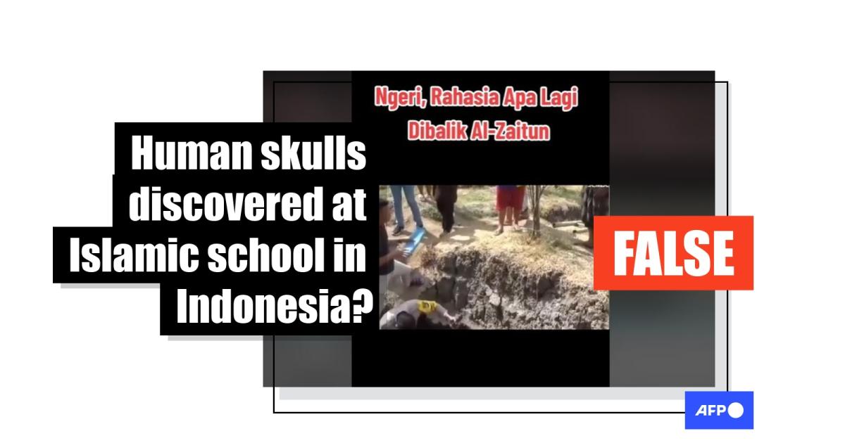Unrelated clips and photos used to falsely claim 'human skulls found at Indonesian Islamic school'