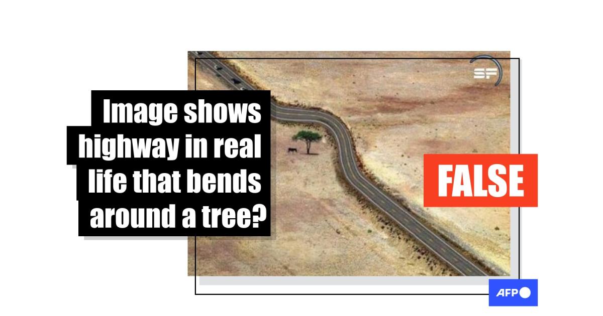 Users appear to believe the image in the misleading post shows a real highway built around a tree to avoid having to cut it down.
