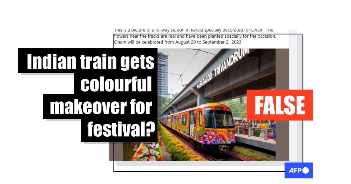 Part of the post reads: "An edited picture of a colourful train is circulating on social media with a claim that it is from a railway station in Kerala. The claim is false."