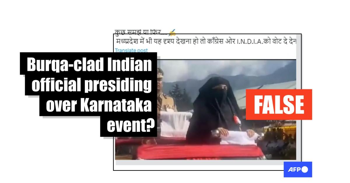 It says the burqa-clad woman is a district collector -- a high-ranking officer appointed by the state government -- and the clip was filmed in the southwestern state of Karnataka, where the opposition Congress party ousted the ruling Bharatiya Janata Party (BJP) of Prime Minister Narendra Modi in state assembly elections in May (archived link).