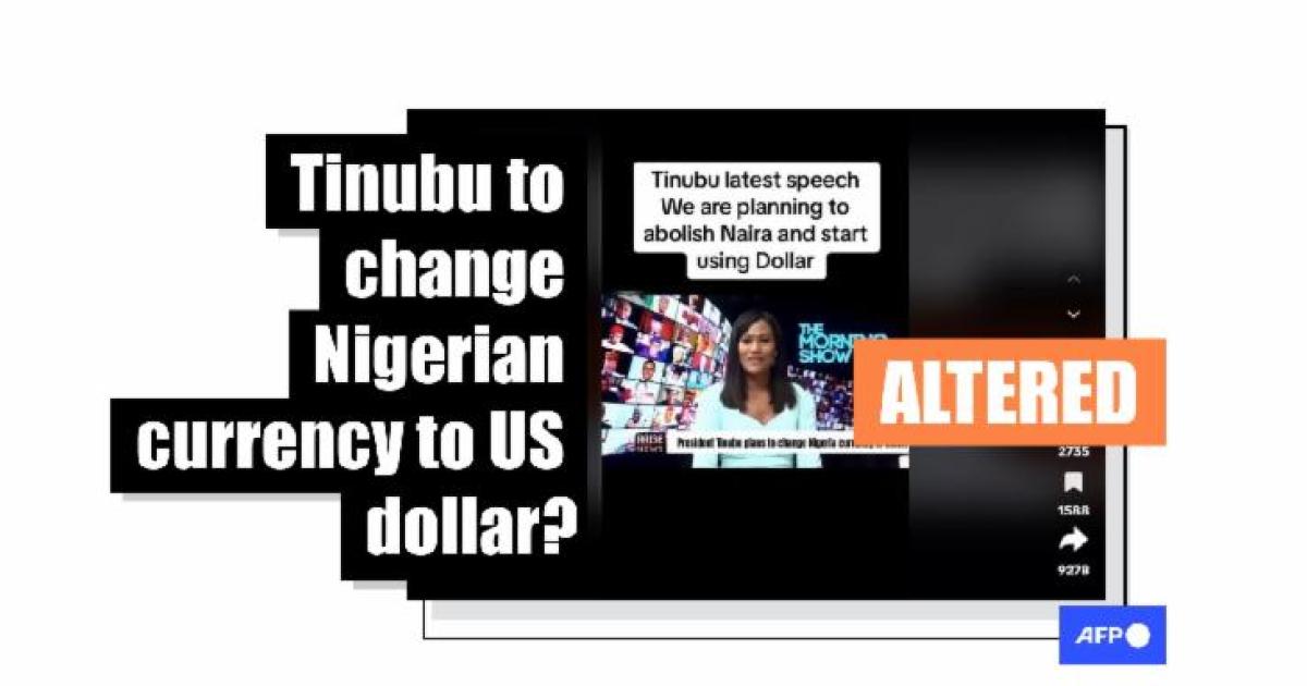 "President Tinubu plans to change Nigeria currency to dollar (sic)," reads the news headline at the bottom of the screen.