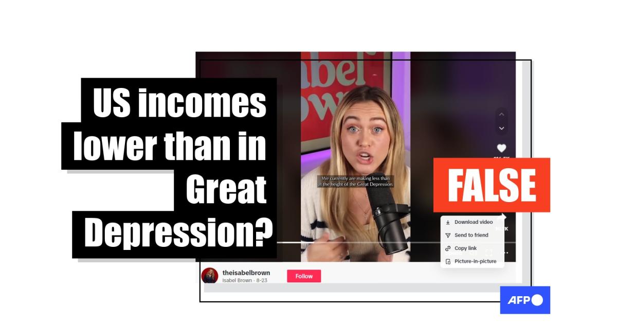 "We are currently making less than the height of the Great Depression," says an August 23, 2023 TikTok video from Isabel Brown, a conservative activist at Turning Point USA, with more than 3.6 million views.