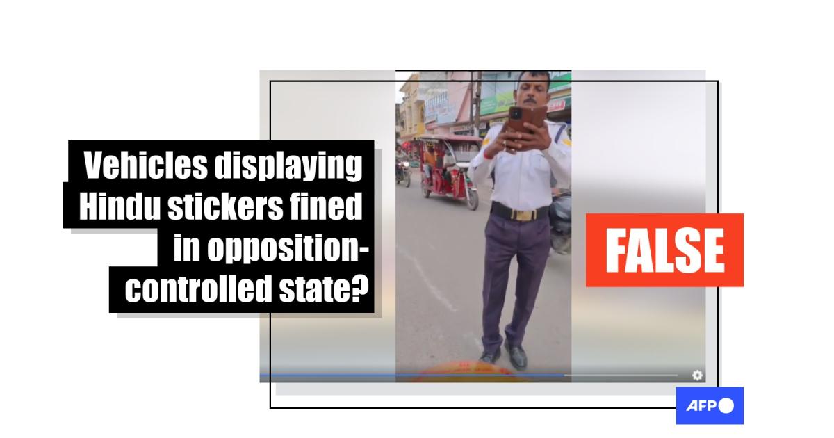 Video of driver fined for Hindu sticker filmed in Indian state run by ruling party, not opposition
