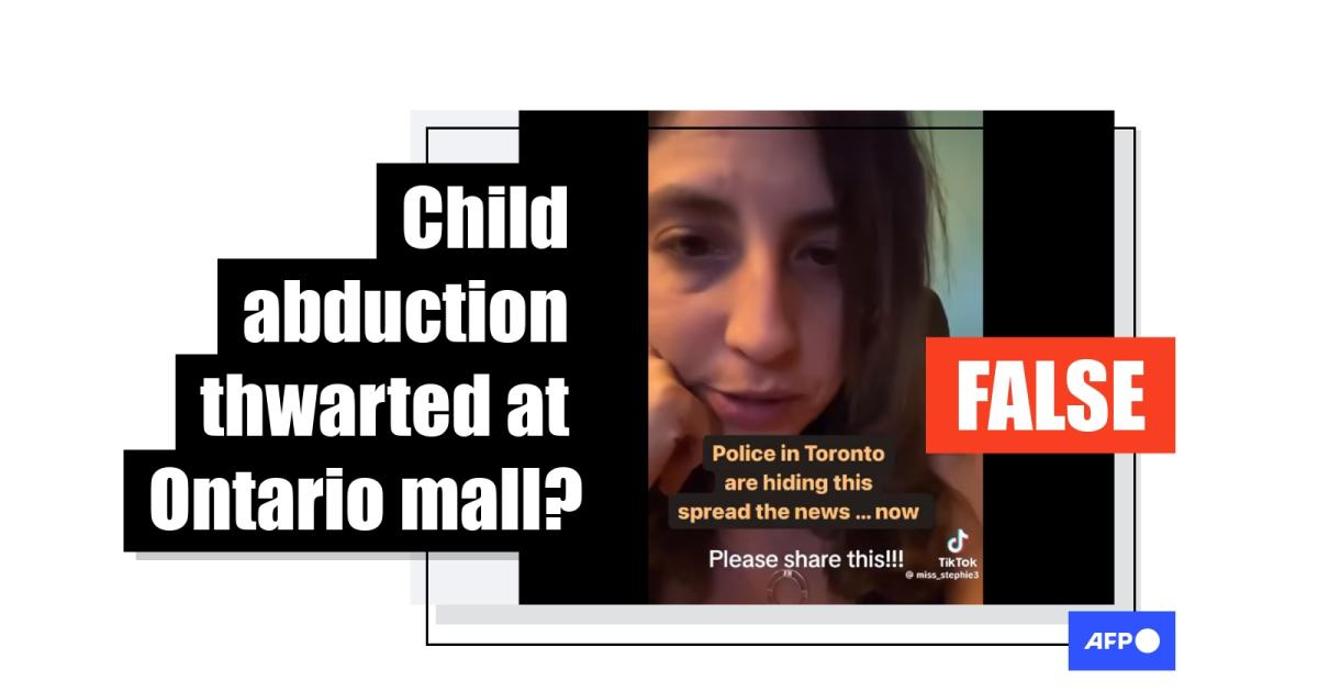 Social media captions and the speaker in the video said Toronto police were trying to cover up the purported abduction trend, but the Toronto Police Service told AFP that Vaughan does not fall under its jurisdiction and it was not investigating any cases at the mall.