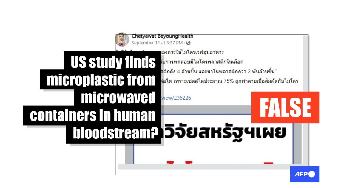 "US researcher reveals microplastics from microwaved food found in human blood!" reads Thai-language text in an image attached to a Facebook post published on September 11, 2023.