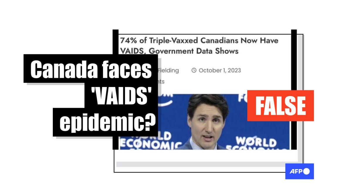"Canadian Gov't Admit 74% of Triple Vaccinated Now Have VAIDS," says the headline of an October 1, 2023 article from The People's Voice, a website AFP has repeatedly fact-checked for promoting false and misleading claims.