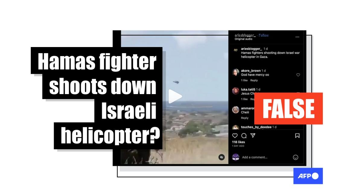 “Hamas fighters shooting down Israel war helicopter in Gaza (sic),” reads a post published on Instagram on October 8, 2023.