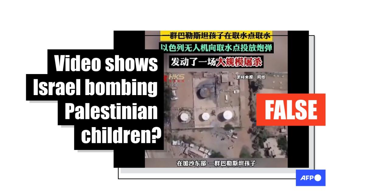 "Israeli drones dropped bombs on a water collection point while a group of Palestinian children were fetching water," reads the simplified Chinese-language caption of a video shared here on X, formerly Twitter, on October 22.