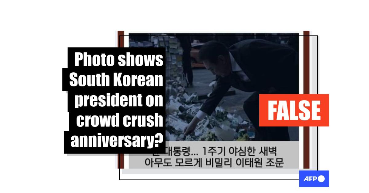 Altered photo falsely shared as South Korean leader honouring crowd crush victims on anniversary