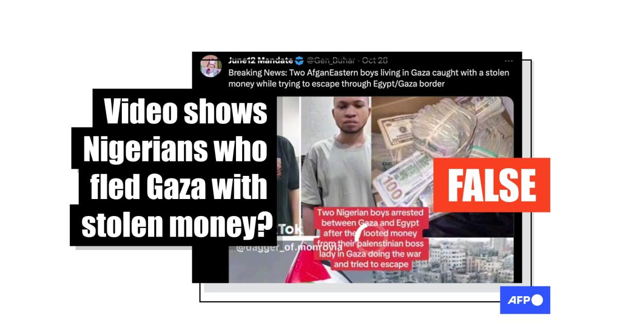 "Breaking News: Two AfganEastern boys living in Gaza caught with a stolen money while trying to escape through Egypt/Gaza border [sic]," reads a post shared on X, formerly Twitter on October 28, 2023.