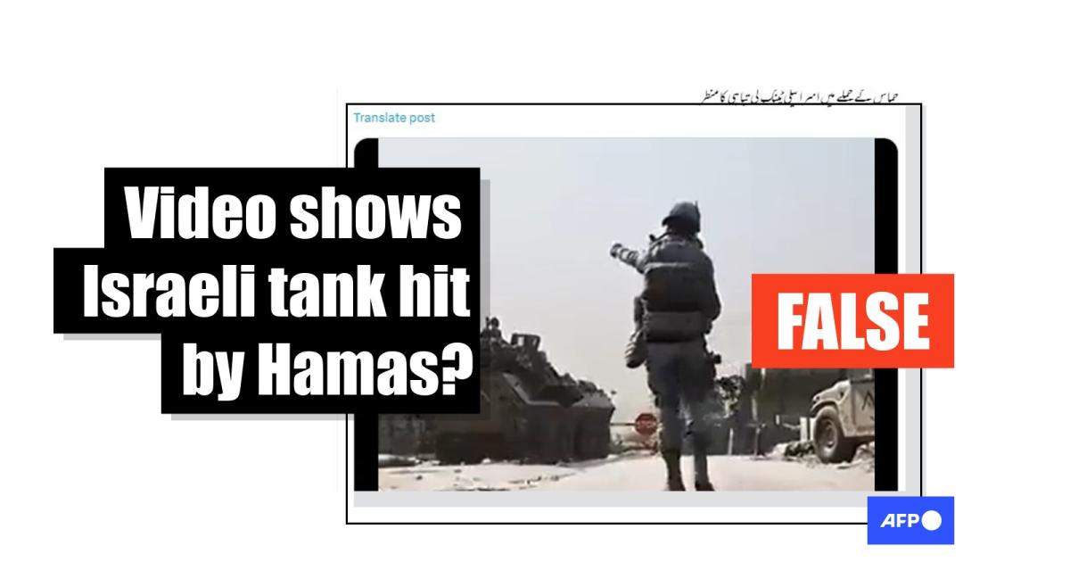 "The scene of the destruction of an Israeli tank in a Hamas attack," the post says in Urdu.