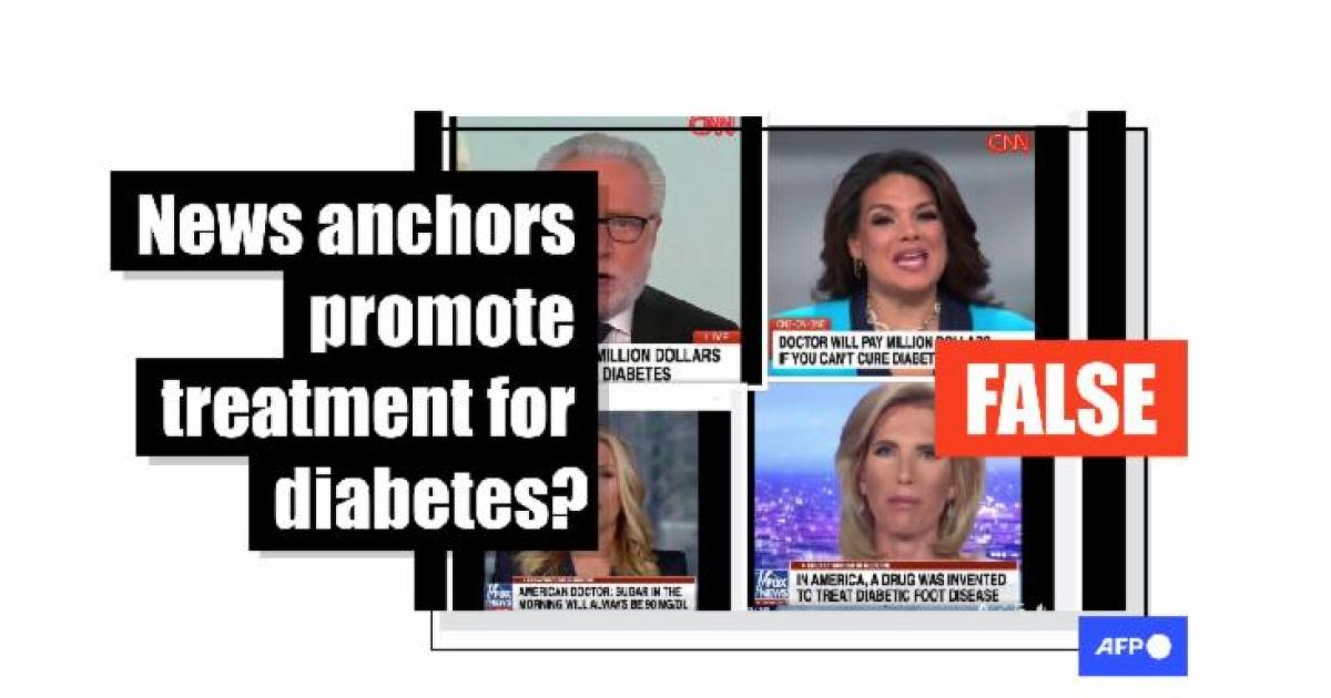 Using reverse image and keyword searches, AFP found the clips were manipulated from genuine segments that aired on CNN and Fox. None were about diabetes: