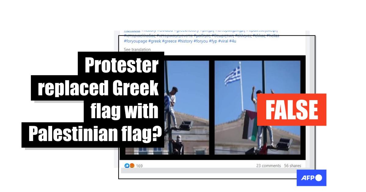 However, social media posts showed pictures of his actions in reverse order with false claims that the man had taken down a Greek flag and replaced it with a Palestinian one.