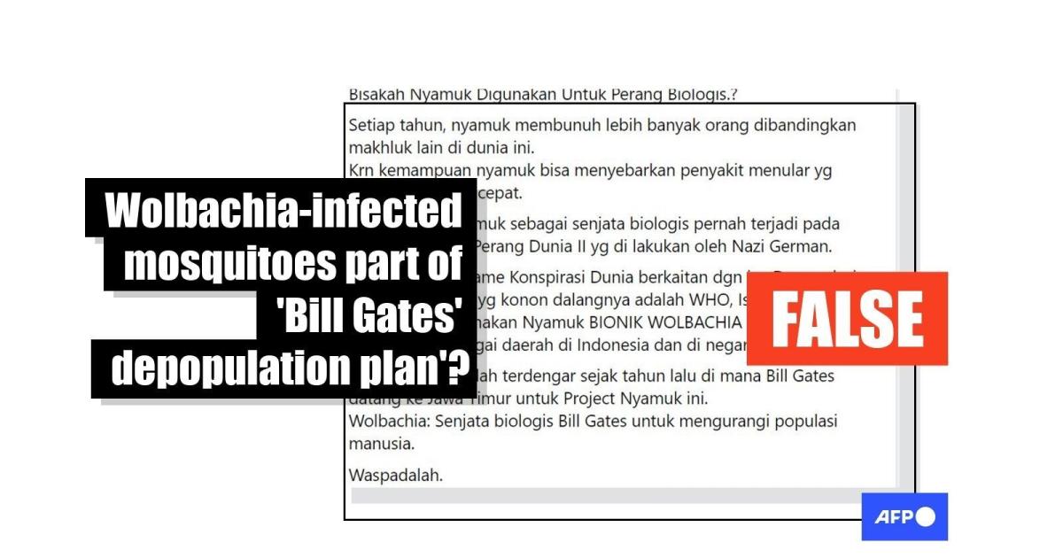 "Wolbachia: Bill Gates' biological weapon to decrease the human population," reads part of an Indonesian-language Facebook post uploaded here on November 18, 2023.