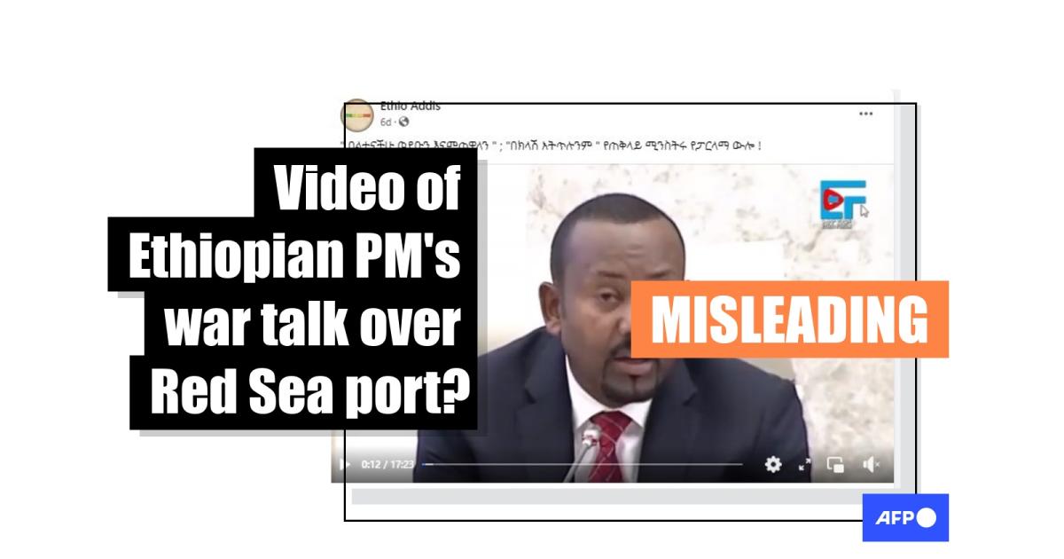 AFP Fact Check found this exact segment at 4:31:25 into the original video. Abiy did not say his government had the military capability to take over the port, nor did he announce “the inevitability of another round of war”.