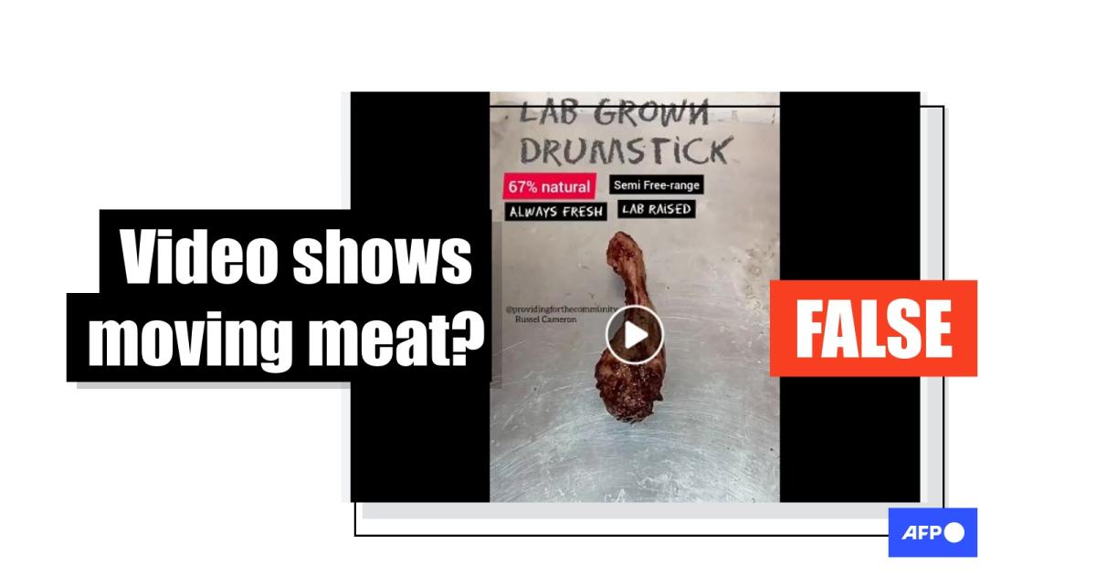 "Bill Gates lab grown zombie meat," claims a November 27, 2023 Facebook post sharing a video of a drumstick that appears to be moving.